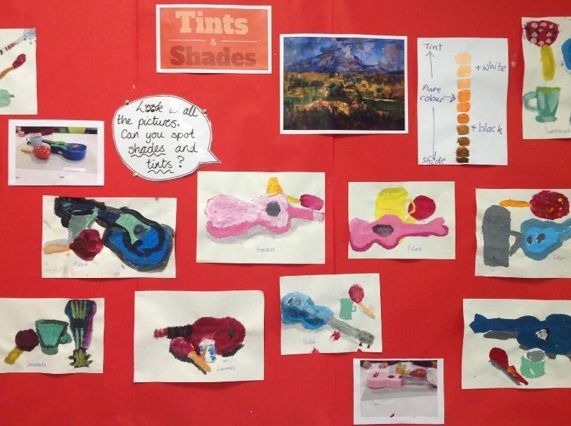 Finally, in Art we have been learning all about shades and tints and how they can enhance our work. A shade is where black is added to a colour and a tint is where white is added to a colour. The children applied these skills to these beautiful paintings of musical instruments. The use of shades and tints really helps them look more 3-Dimensional.