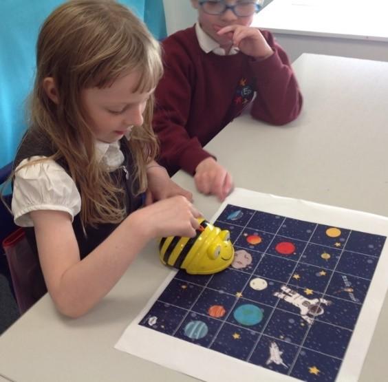 This week In Geography we have been using simple compass directions, locational and directional language, to describe the location of features and routes on a map. We directed beetbots using directional language such as forwards and backwards, left and right. We used grid lines and space terrain map. We programmed the beetbot to move around the map.