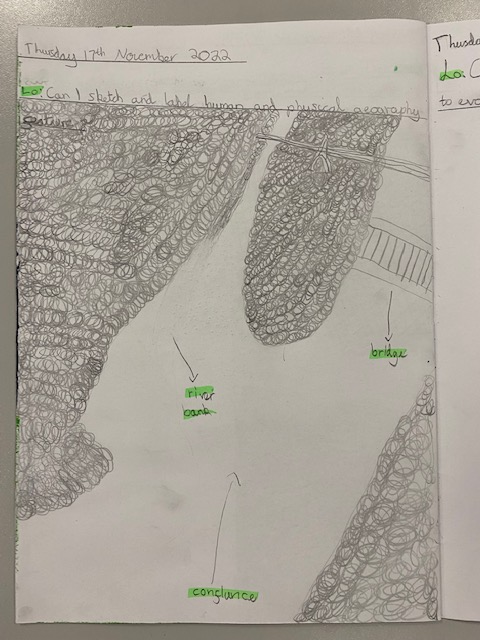 On returning from Lea Valley, the children used their art skills to sketch and label parts of the River Lea.